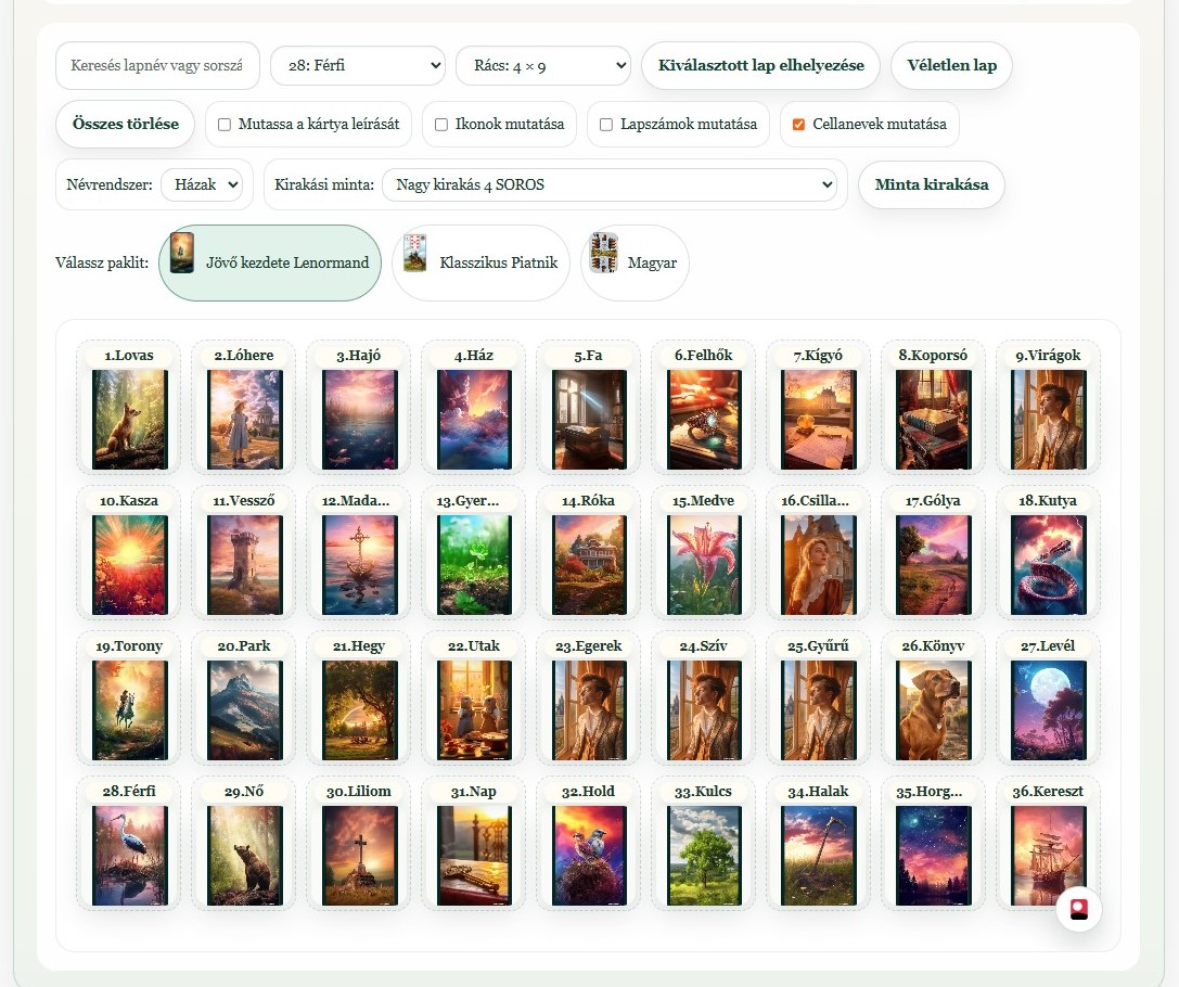 Sziasztok! 🙂 Jó hír! Az interaktív kártyahúzó tábla elkészült! Nagyon sok különleges funkciót építettünk bele. Pl. képes a NAGY KÁRTYAKÉP kirakásra is, választásod szerint 4 vagy 5 sorban. A lapok legfontosabb kulcsszavait is mutatja, de ha nincsen rá szükséged, akkor ki tudod k… Tovább