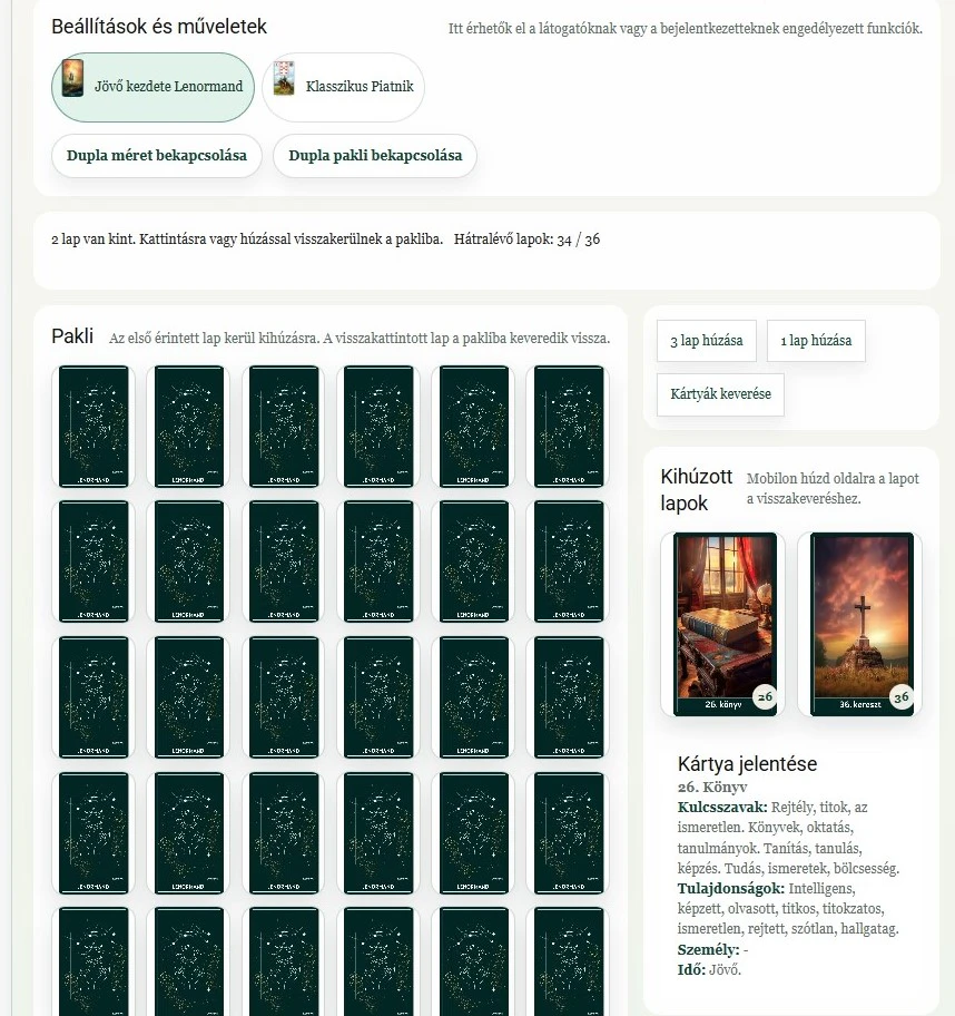 Ez egy virtuális kártyahúzó program. Mindenki számára elérhető. Klubtagoknak EXTRA funkciókkal.